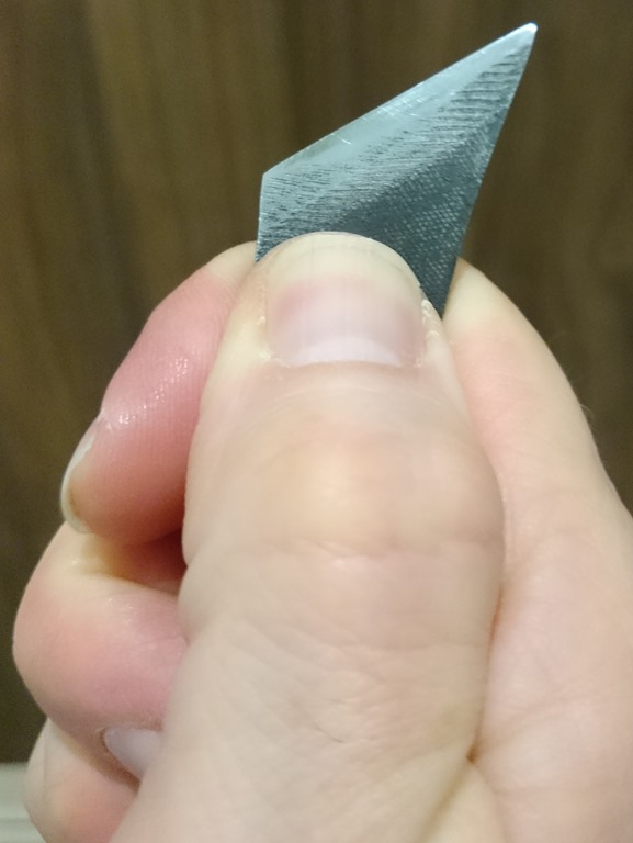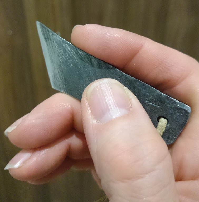 Only it really is so much more than that, for it’s size, it is probably one of the most versatile sharp edges ever. It has a sharp edge which is a tad over an inch long, it can be used for delicate detail work and for the bigger sweeping pivot cuts. and all that in a little over two inches in overall length. What more could you want?