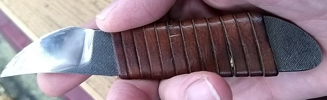 The haft is also carefully considered. You will see from this photo that it fits snugly into the palm of my hand providing me with the ability to work comfortably cutting away from me with no loss of control.