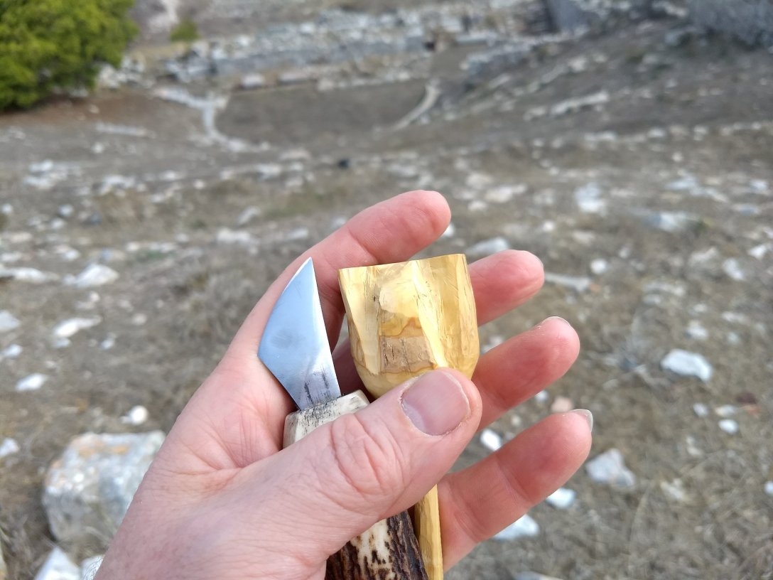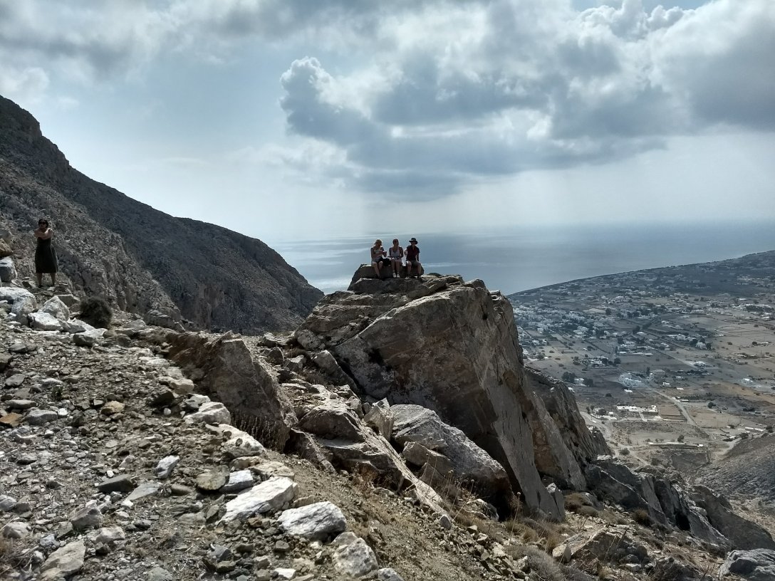 Ok, yesterday morning we walked up the mountain to the ancient city of -Thera. Quite a strenuous climb in places but the mountain was only about 400m high so not really that high. But I was able to work on my current rosebud for most of it. I wasn’t doing any of the detailed work while walking but we stopped a couple of times while walking around the ruins themselves.