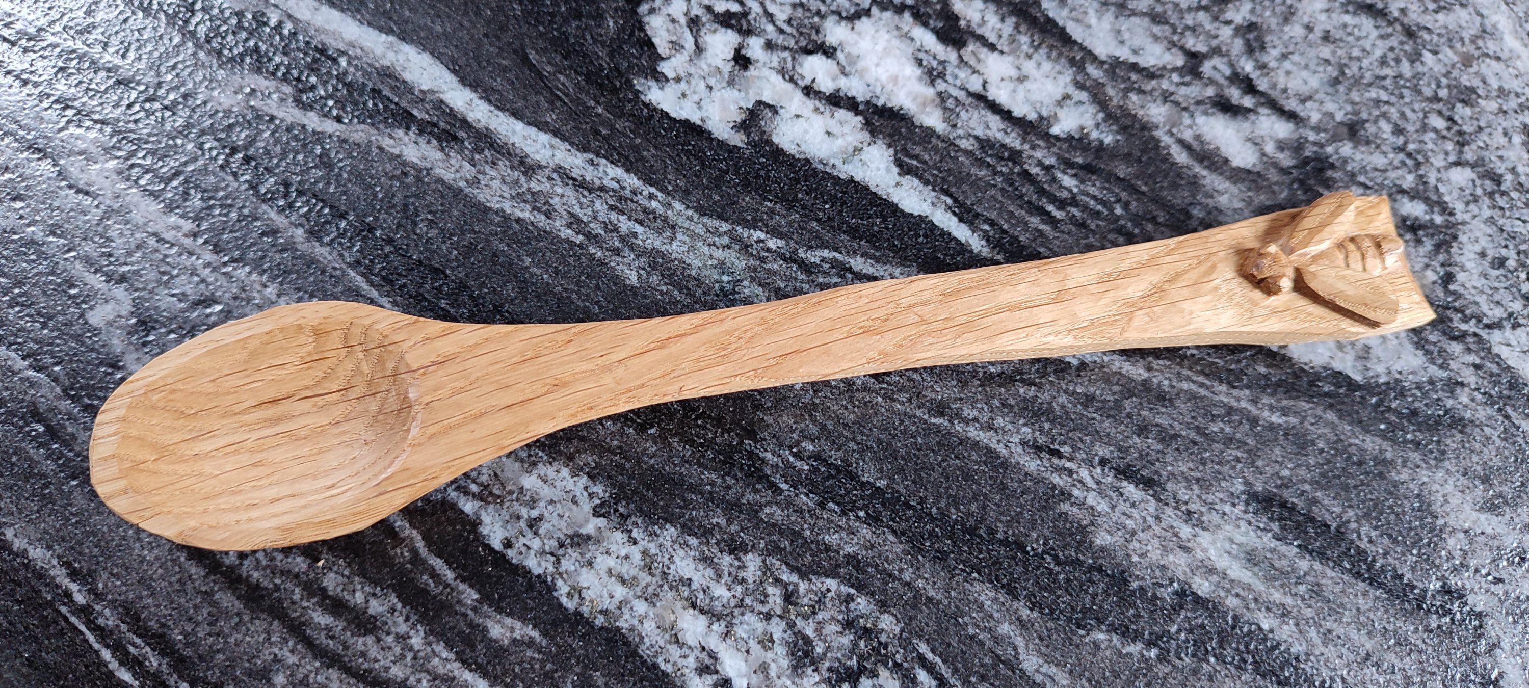 This “Bee” spoon was for Julie to use in her brand new kitchen and is Oak.